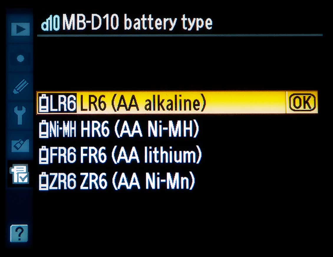 Thanks John for all the valuable info. I google to find review which battery are best to use for the MB-D100 and your blog came up. I had bought the Sanyo eneloops for my SB-800 flashes and now use them for my MB-D10. Athough I'm contenpating getting the EN-EL4a setup because of its extended capacity but very expensive cost and because the eneloops charger is slower.